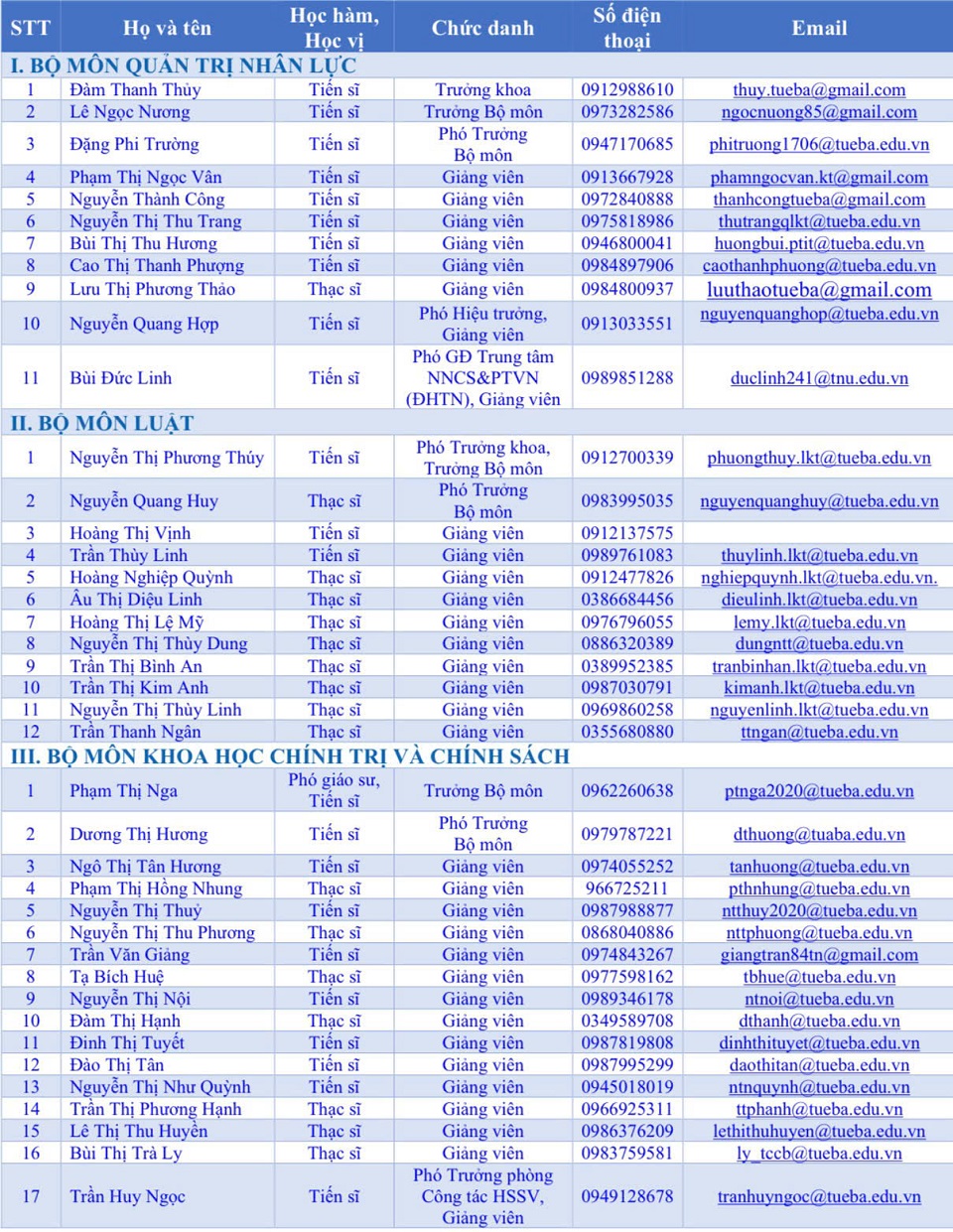 VII. DANH SÁCH CBGV KHOA LUẬT VÀ QUẢN LÝ