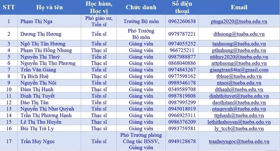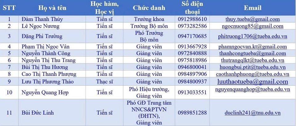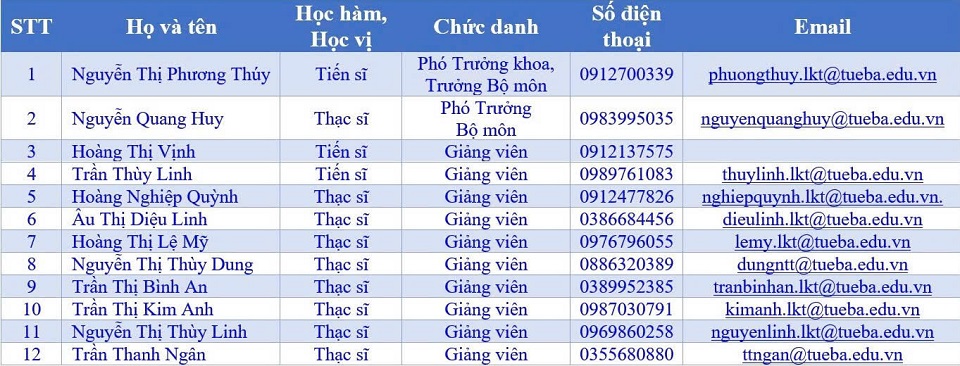 Danh sách giảng viên Bộ môn