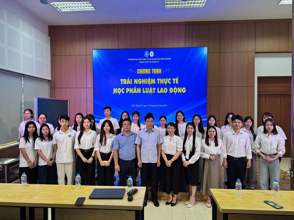 18/04/2026Ngày 18/4/2026, tại Phòng 301 - Tòa nhà B1, Khoa Luật và Quản lý, Bộ môn Luật đã tổ chức hoạt động trải nghiệm thực tế học phần Luật Lao động dành cho sinh viên. Đây là dịp để gắn kết kiến thức lý thuyết với thực tiễn, đồng thời giúp sinh viên hiểu rõ hơn về việc áp dụng pháp luật lao động trong môi trường làm việc.