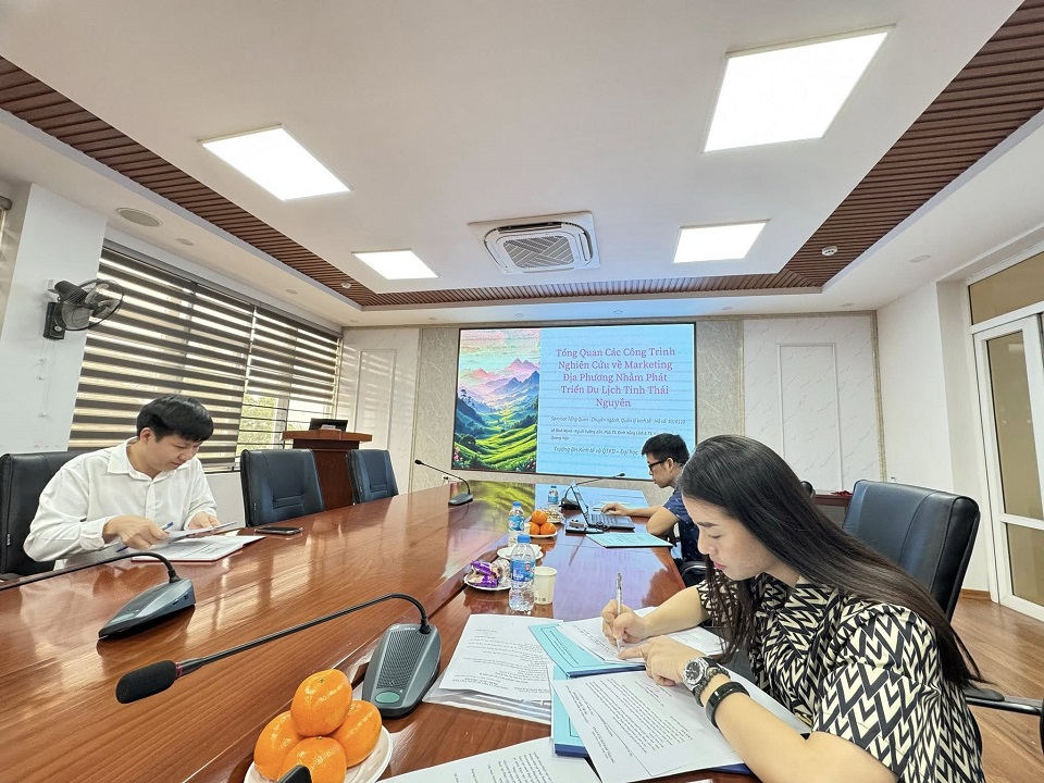 15/04/2026Sáng ngày 15/4/2026, tại Phòng họp C - Tòa nhà A1, Trường Đại học Kinh tế và Quản trị kinh doanh đã diễn ra buổi sinh hoạt học thuật với phần trình bày seminar của NCS. Lê Đình Mạnh với hai seminar: “Tổng quan các công trình nghiên cứu về marketing địa phương nhằm phát triển du lịch tỉnh Thái Nguyên” và “Cơ sở lý luận và thực tiễn về marketing địa phương nhằm phát triển du lịch tỉnh Thái Nguyên”.