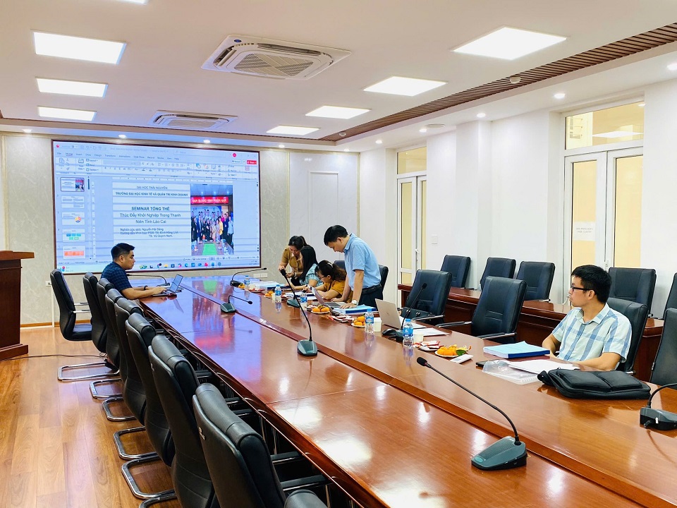 22/04/2026Chiều ngày 22/4/2026, tại Phòng họp C - Tòa nhà A1, Trường Đại học Kinh tế và Quahnr trị kinh doanh đã diễn ra không khí học thuật sôi nổi với buổi seminar tổng thể luận án tiến sĩ của nghiên cứu sinh Nguyễn Hải Đăng.